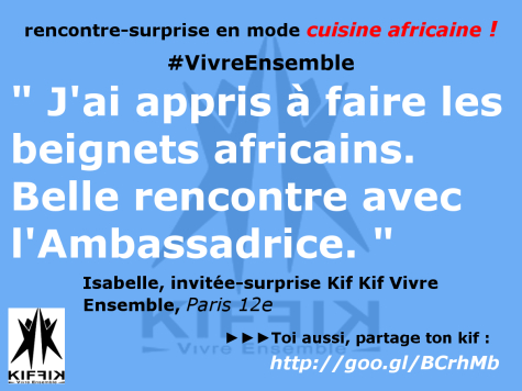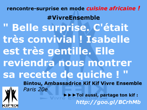 Bintou avait lancé une invitation-surprise pour accueillir des personnes qu’elle ne connait pas, à l’aveugle, lors d’un atelier dédié à la cuisine africaine !